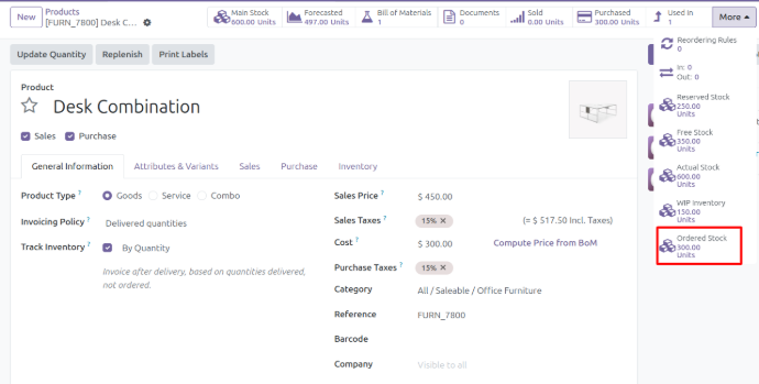 Ordered Stock Refers to goods purchased from suppliers but not yet delivered to the warehouse.