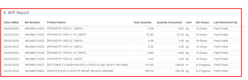 WIP Report(Manufacturing Consumption)